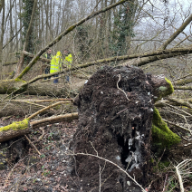 Bomen die op de asbestdijken groeien wortelen oppervlakkig in het asbesthoudend materiaal. Omdat ze maar oppervlakkig kunnen wortelen, vallen ze gemakkelijk om als ze groter worden. De bomen beschadigen dus het afdekmateriaal en kunnen het asbest blootleggen.