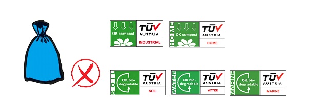 Plastic producten of verpakkingen die één van deze logo’s dragen, zijn in het labo getest geweest op afbraak in één van die milieus. Dit betekent echter niet dat de plastic zomaar in het milieu verdwijnen. De omstandigheden moeten optimaal zijn, en dat is dus alleen onder gecontroleerde omstandigheden. Deze logo’s zijn dus enkel relevant in specifieke sectoren en toepassingen, niet voor verpakkingen.