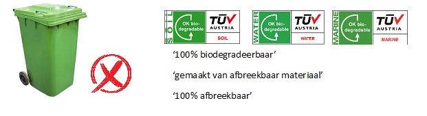 Biodegradeerbare kunststoffen mogen niet in het milieu gegooid worden: