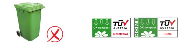 Verschillende logo’s suggereren dat bepaalde verpakkingen in het gft mogen. Dit is niet zo. Het is niet omdat op een product een composteerbaarheidslogo staat, dat compostering gegarandeerd is. Dat hierdoor verwarring ontstaat bij de consument is heel begrijpelijk. Daarom willen wij erop wijzen dat een logo geen sorteerboodschap is.
